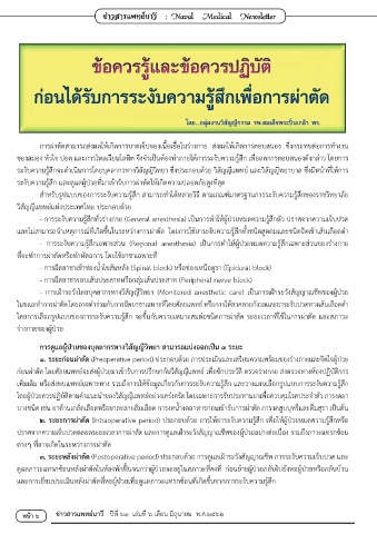 โดย...กลุ่มงานวิสัญญีกรรม รพ.สมเด็จพระปิ่นเกล้า พร.