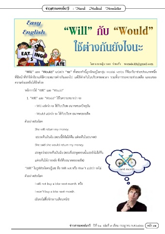 “Will” และ “Would” แปลว่า “จะ” ทั้งสองค�านี้ถูกจัดอยู่ในกลุ่ม modal verbs ก็คือกริยาช่วยประเภทหนึ่ง