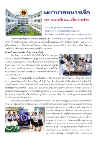 “พยาบาลทหารเรือแตกต่างจากพยาบาลที่อื่นอย่างไร” เรามักจะได้ยินค�าถามนี้อยู่บ่อยครั้ง และค�าตอบที่ได้รับใน