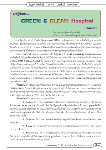 GREEN & CLEAN ใน รพ.ฯ ทั้งในรูปแบบการลงค�าสั่ง การลงประกาศในเว็บไซต์ ของ รพ.ฯ การประกาศหน้าแถวประจ�า