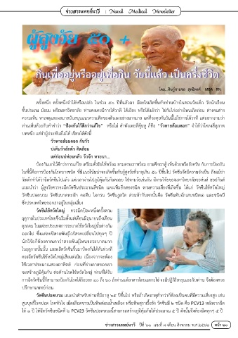 ในที่นี้คือการป้องกันโรคบางชนิด ที่มีแนวโน้มน่าจะเกิดขึ้นกับผู้สูงวัยที่อายุเกิน ๕๐ ปีขึ้นไป วัคซีนจึงมีความจ�าเป็น ถึงแม้ว่า