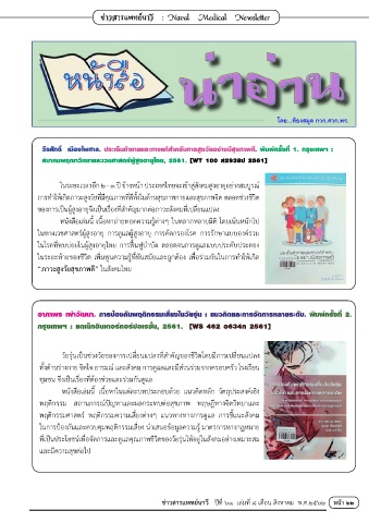 ข่าวสารแพทย์นาวี ปีที่ ๖๑ เล่มที่ ๘ เดือน สิงหาคม พ.ศ.๒๕๖๒ หน้า ๒๒