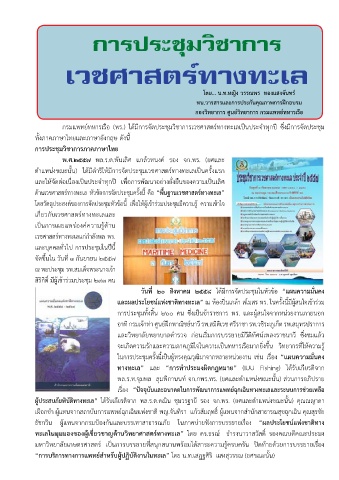 ด้านเวชศาสตร์ทางทะเล หัวข้อการจัดประชุมครั้งนี้ คือ “พื้นฐานเวชศาสตร์ทางทะเล”