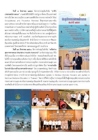 เวชศาสตร์ทางทะเล” ภายหลังพิธีเปิดได้มีการปาฐกถาพิเศษ เรื่องเวชศาสตร์