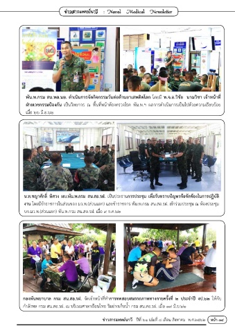 ฝ่ายเวชกรรมป้องกัน เป็นวิทยากร ณ พื้นที่หน้าห้องตรวจโรค พัน.พ.ฯ ผลการด�าเนินการเป็นไปด้วยความเรียบร้อย