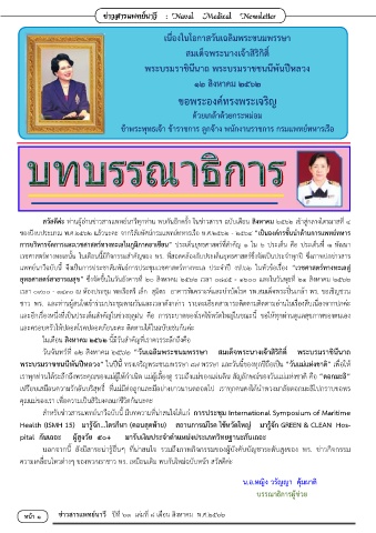 หน้า ๑ ข่าวสารแพทย์นาวี ปีที่ ๖๑ เล่มที่ ๘ เดือน สิงหาคม พ.ศ.๒๕๖๒