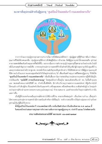 ธนาคารสิ่งอุปกรณ์ส�าหรับผู้สูงอายุ “ศูนย์ปันน�้าใจแพทย์นาวี กรมแพทย์ทหารเรือ”