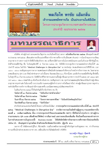 ข่าวสารแพทย์นาวี ปีที่ ๖๑ เล่มที่ ๙ เดือน กันยายน พ.ศ.๒๕๖๒ หน้า ๑
