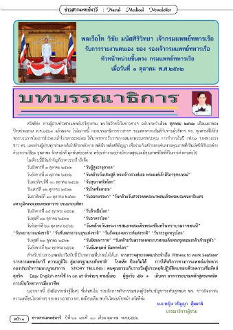 หน้า ๑ ข่าวสารแพทย์นาวี ปีที่ ๖๑ เล่มที่ ๑๐ เดือน ตุลาคม พ.ศ.๒๕๖๒