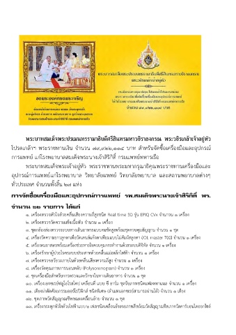 โปรดเกล้าฯ พระราชทานเงิน จ�านวน ๗๙,๙๒๒,๑๑๔ บาท ส�าหรับจัดซื้อเครื่องมือและอุปกรณ์