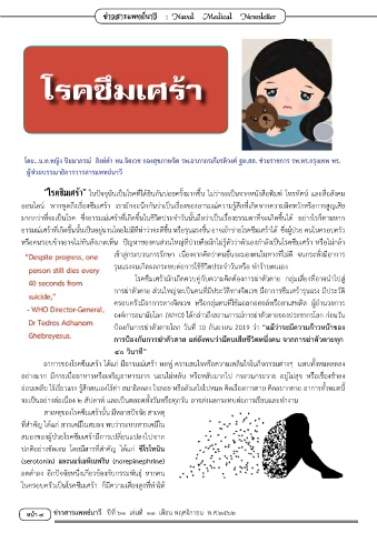 โดย...น.ท.หญิง ปิยมาภรณ์ สิงห์ค�า หน.จิตเวช กองสุขภาพจิต รพ.อาภากรเกียรติวงศ์ ฐท.สส. ช่วยราชการ รพ.ทร.กรุงเทพ พร.