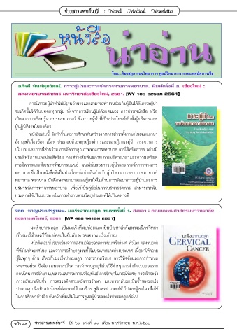 หน้า ๑๕ ข่าวสารแพทย์นาวี ปีที่ ๖๑ เล่มที่ ๑๑ เดือน พฤศจิกำยน พ.ศ.๒๕๖๒