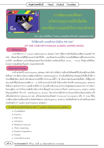 กำรท�ำหัตถกำร CT guided radiofrequency ablation โดยกำรใช้อุปกรณ์จับยึดเข็มและเพิ่มควำมแม่นย�ำ PIN