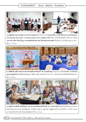 Personality Inventory -2- Restructured Form (MMPI-2-RF) ให้แก่ นักจิตวิทยาคลินิก สังกัด ทร. โดยมี