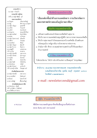 น.อ.ภิสักก์ ก้อนเมฆ ๓. ให้บริการสุขภาพแก่ก�าลังพลและครอบครัวกองทัพเรือ เป็นหลักและ