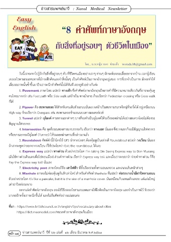 1. Pavement ภาษาไทย แปลว่า ทางเท้า ซึ่งค�าศัพท์ภาษาอังกฤษมีหลายค�าที่มีความหมายเดียวกันที่อาจจะคุ้นหู