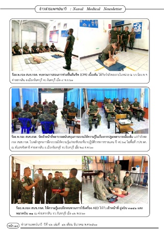 ร้อย.พ.กอง สนช.กจต. จัดเจ้าหน้าที่พยาบาลสนับสนุนการอบรมให้ความรู้ในเรื่องการปฐมพยาบาลเบื้องต้น แก่ก�าลังพล