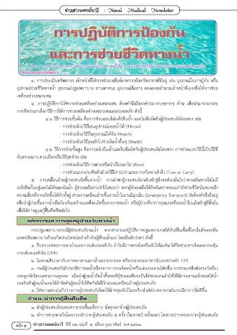 ๕. การเคลื่อนย้ายผู้ประสบภัยขึ้นจากน�้า การน�าพาผู้ประสบภัยกลับเข้าสู่ฝั่งจะต้องมั่นใจว่าทางเดินหายใจไม่มี