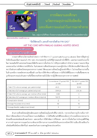 จากผลการศึกษานวัตกรรมดังกล่าวพบว่า การท�าหัตถการ CT guided radiofrequency ablation โดยการใช้อุปกรณ์