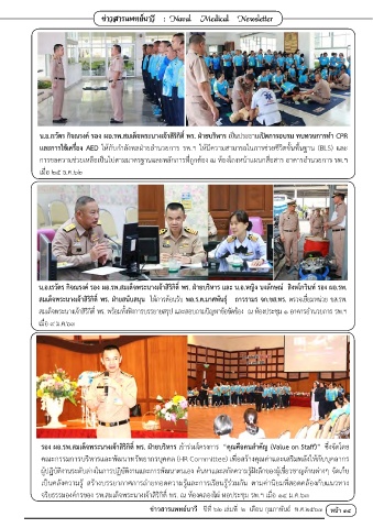 และการใช้เครื่อง AED ให้กับก�าลังพลฝ่ายอ�านวยการ รพ.ฯ ให้มีความสามารถในการช่วยชีวิตขั้นพื้นฐาน (BLS) และ