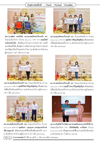 พล.ร.ต.สุมิตร แดงดีเลิศ ผอ.รพ.สมเด็จพระปิ่นเกล้า พร. ผอ.รพ.สมเด็จพระปิ่นเกล้า พร. รับมอบเงินบริจาค จ�านวน