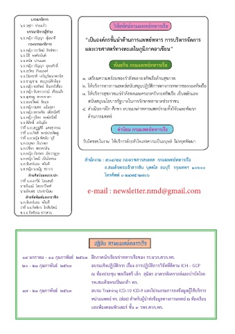 น.อ.หญิง จันทราภรณ์ เคียมเส็ง ๓. ให้บริการสุขภาพแก่ก�าลังพลและครอบครัวกองทัพเรือ เป็นหลักและ