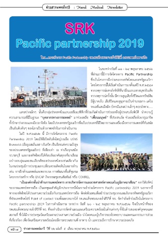 ของกรมแพทย์ทหารเรือ เป็นเหตุผลส�าคัญอีกประการหนึ่งในการเข้าร่วมโครงการ Pacific partnership 2019 นอกจากนี้
