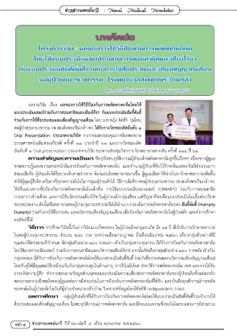 Oral Presentation ประเภทงำนวิจัย จากงานมหกรรมคุณภาพโรงพยาบาล