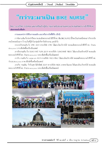 กำรจัดงำนเดิน-วิ่งประจ�ำปีของ รพ.สมเด็จพระนำงเจ้ำสิริกิติ์ พร. ทีม BIKE NURSE นี้ก็จะเป็นส่วนหนึ่งของภำรกิจกำรจัด