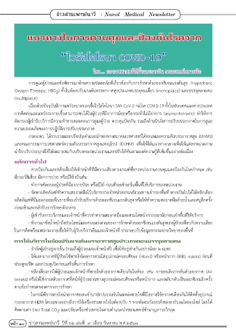 หน้า ๑๐ ข่าวสารแพทย์นาวี ปีที่ ๖๒ เล่มที่ ๙ เดือน กันยายน พ.ศ.๒๕๖๓