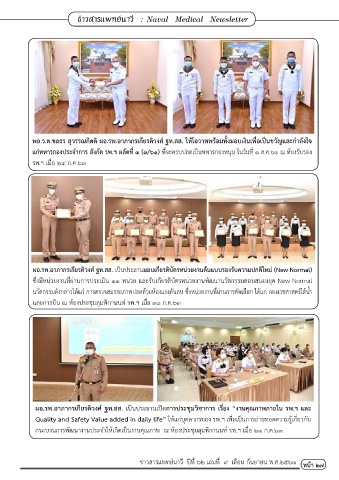 ผอ.รพ.อาภากรเกียรติวงศ์ ฐท.สส. เป็นประธานมอบเกียรติบัตรหน่วยงานต้นแบบรองรับความปกติใหม่ (New Normal)