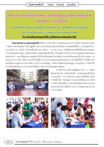 และครอบครัว และแก้ปัญหาสุขภาพชุมชนได้ภายใต้การสนับสนุนของวิทยาลัยพยาบาลกองทัพเรือและศูนย์บริการสาธารณสุข ๓๖