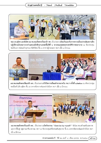ผอ.รพ.สมเด็จพระปิ่นเกล้า พร. เป็นประธานเปิดกิจกรรม “ Exercise by myself “ จัดโดย สน.สร้างเสริมสุขภาพ