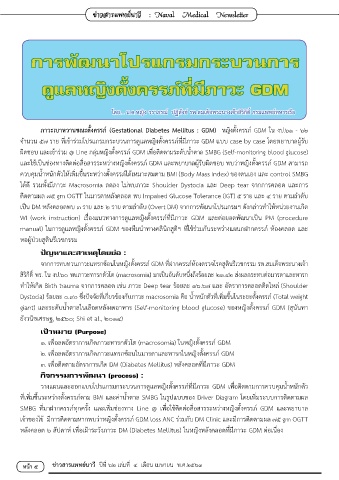 วางแผนและออกแบบโปรแกรมกระบวนการดูแลหญิงตั้งครรภ์ที่มีภาวะ GDM เพื่อติดตามการควบคุมน�้าหนักตัว