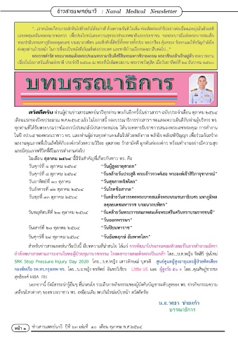 สวัสดีครับ ท่านผู้อ่านข่าวสารแพทย์นาวีทุกท่าน พบกันอีกครั้งในข่าวสารฯ ฉบับประจ�าเดือน ตุลาคม ๒๕๖๔