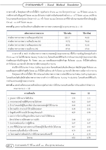 ตำรำงที่ ๒ แสดงการเปรียบเทียบค่าเฉลี่ยผลิตภาพทางการพยาบาลของหอผู้ป่วยกุมารเวชกรรม (n = 14)