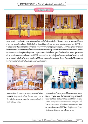 กองทัพเรือ ได้กรุณามอบเงินบริจาค จ�านวน ๑,๐๐๐,๐๐๐ บาท Kreme จ�ำนวน ๖๐๐ ชิ้น ให้แก่บุคลำกรทำงกำรแพทย์