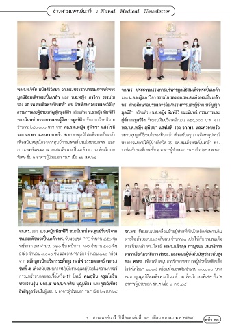 หน้ากาก 3M จ�านวน ๓๒๐ ชิ้น หน้ากาก N95 จ�านวน ๕๐๐ ชิ้น พระปิ่นเกล้า พร. โดยมี พล.ร.อ.ธีรกุล กำญจนะ เสนำธิกำร