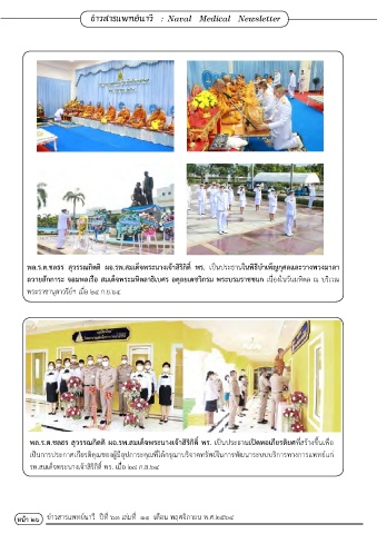 พล.ร.ต.ชลธร สุวรรณกิตติ ผอ.รพ.สมเด็จพระนำงเจ้ำสิริกิติ์ พร. เป็นประธานในพิธีบ�ำเพ็ญกุศลและวำงพวงมำลำ