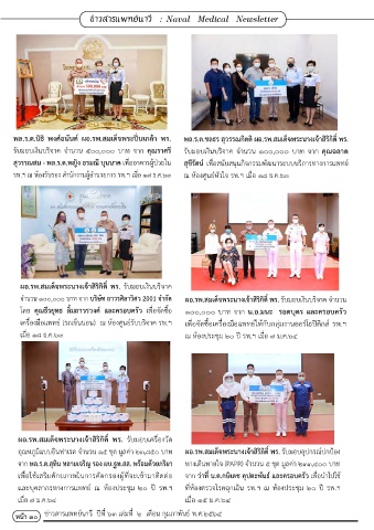 จาก พล.ร.ต.สุทิน หลายเจริญ รอง ผบ.ฐท.สส. พร้อมด้วยภริยา ทางเดินหายใจ (PAPR) จ�านวน ๕ ชุด มูลค่า ๒๓๓,๔๐๐ บาท