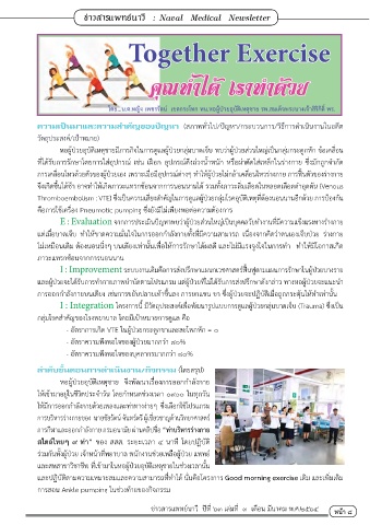E : Evaluation จากการประเมินปัญหาพบว่าผู้ป่วยส่วนใหญ่เป็นบุคคลวัยท�างานที่มีความแข็งแรงทางร่างกาย