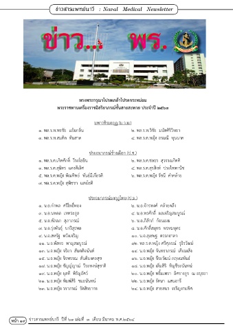 หน้า ๑๙ ข่าวสารแพทย์นาวี ปีที่ ๖๓ เล่มที่ ๓ เดือน มีนาคม พ.ศ.๒๕๖๔