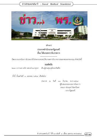 ข่าวสารแพทย์นาวี : Naval Medical Newsletter
