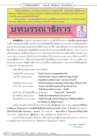 หน้า ๑ ข่าวสารแพทย์นาวี ปีที่ ๖๓ เล่มที่ ๔ เดือน เมษายน พ.ศ.๒๕๖๔