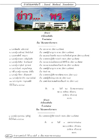 ๒. น.อ.หญิง นงลักษณ์ สิงหโกวินท์ เป็น แพทย์ผู้ชำานาญการ บก.พร. (อัตรา น.อ.พิเศษ)