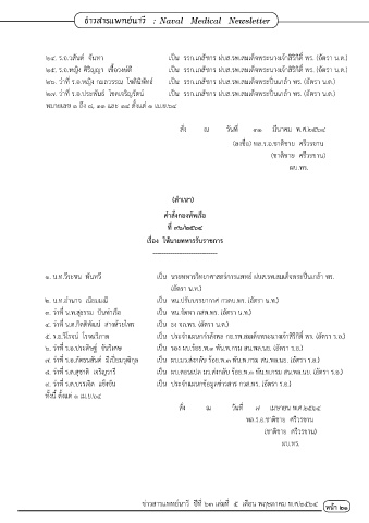 ๒๔. ร.อ.วสันต์ จันทา เป็น รรก.เภสัชกร ฝบส.รพ.สมเด็จพระนางเจ้าสิริกิติ์ พร. (อัตรา น.ต.)