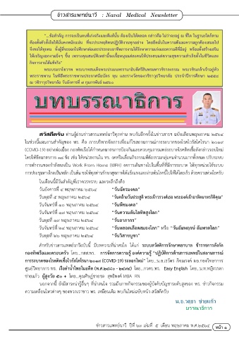 สวัสดีครับ ท่ำนผู้อ่ำนข่ำวสำรแพทย์นำวีทุกท่ำน พบกันอีกครั้งในข่ำวสำรฯ ฉบับเดือนพฤษภำคม ๒๕๖๔