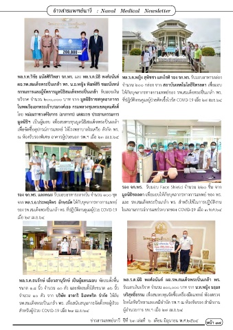 จาก พล.ร.อ.ประพฤติพร อักษรมัต ให้กับบุคลากรทางการแพทย์ และ รพ.สมเด็จพระปิ่นเกล้า พร. ส�าหรับใช้ในการปฏิบัติงาน