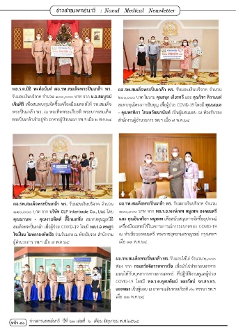 พล.ร.ต.นิธิ พงศ์อนันต์ ผอ.รพ.สมเด็จพระปิ่นเกล้า พร. ผอ.รพ.สมเด็จพระปิ่นเกล้า พร. รับมอบเงินบริจาค จ�านวน