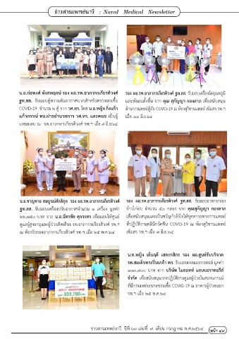 COVID-19 จ�านวน ๒ ตู้ จาก วศ.ทร. โดย น.อ.หญิง กิ่งแก้ว ด้านการแพทย์สู้ภัย COVID-19 ณ ห้องสุวิชานแพทย์ สโมสร รพ.ฯ